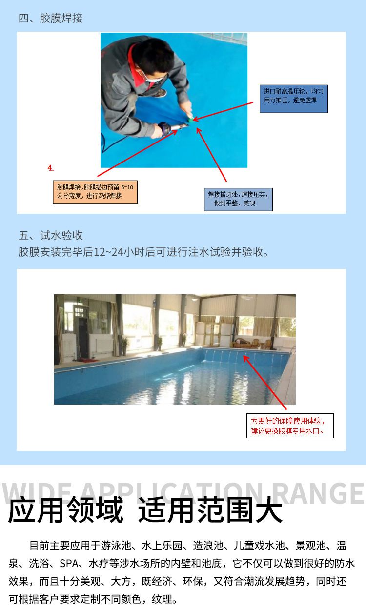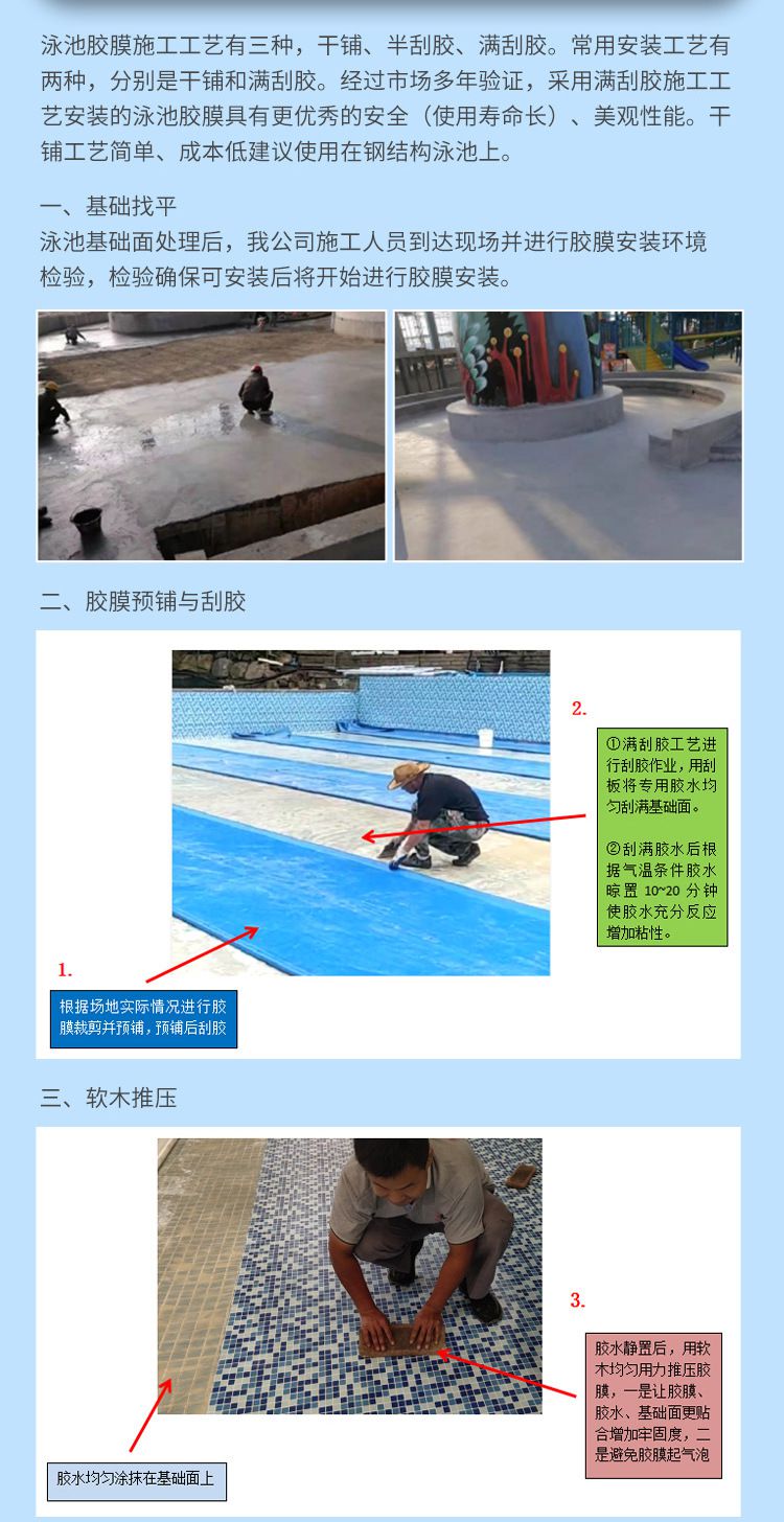 游泳池膠膜施工工藝流程方法